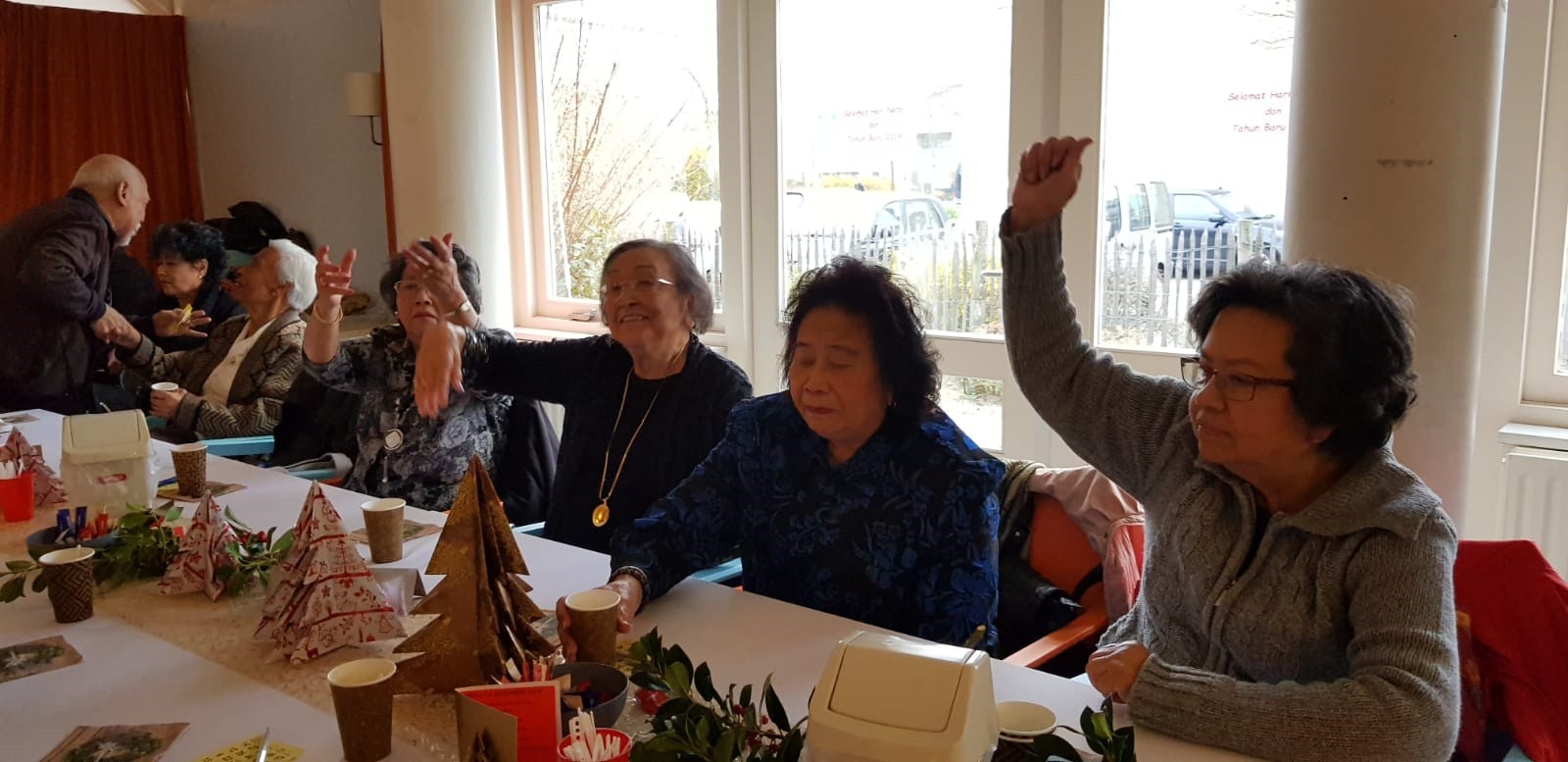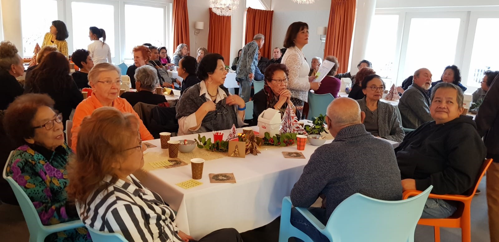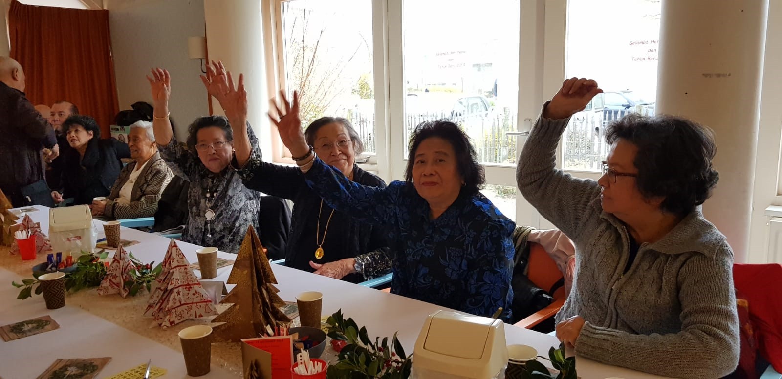 We hebben van Menzis Wageningen een uitnodiging ontvangen om met een aantal ouderen een Kerstdiner bij te wonen. Daar hebben wij gretig gebruik van gemaakt. We hebben een willekeurig aantal ouderen gevraagd om met ons mee te gaan en een paar vrijwilligers als begeleiders.