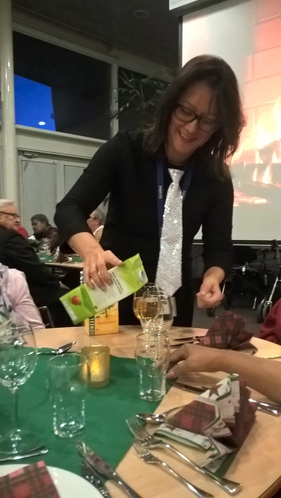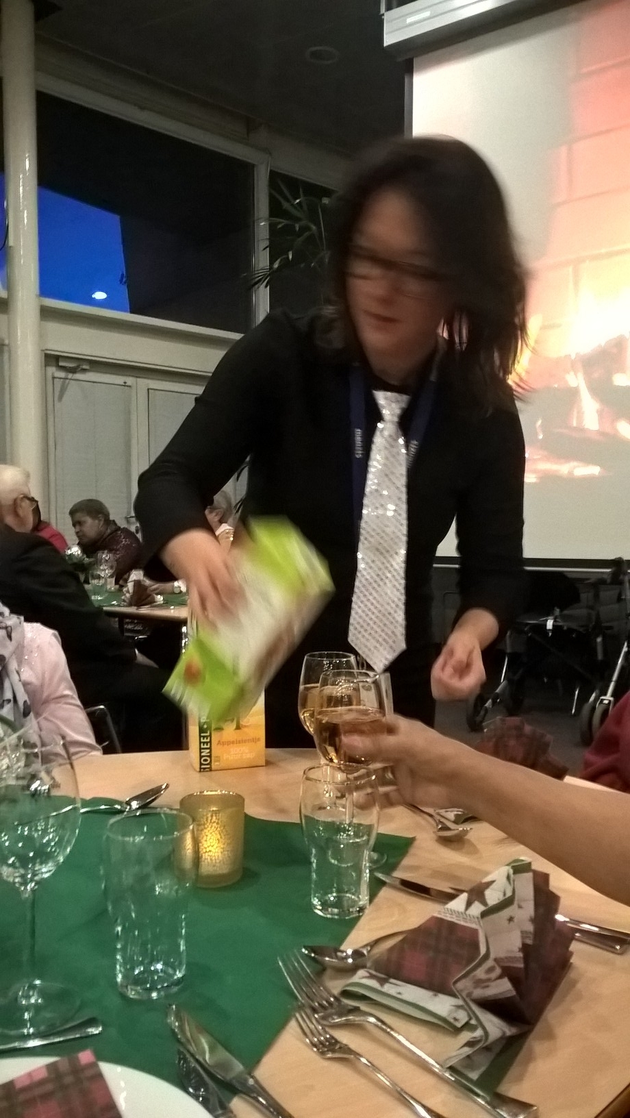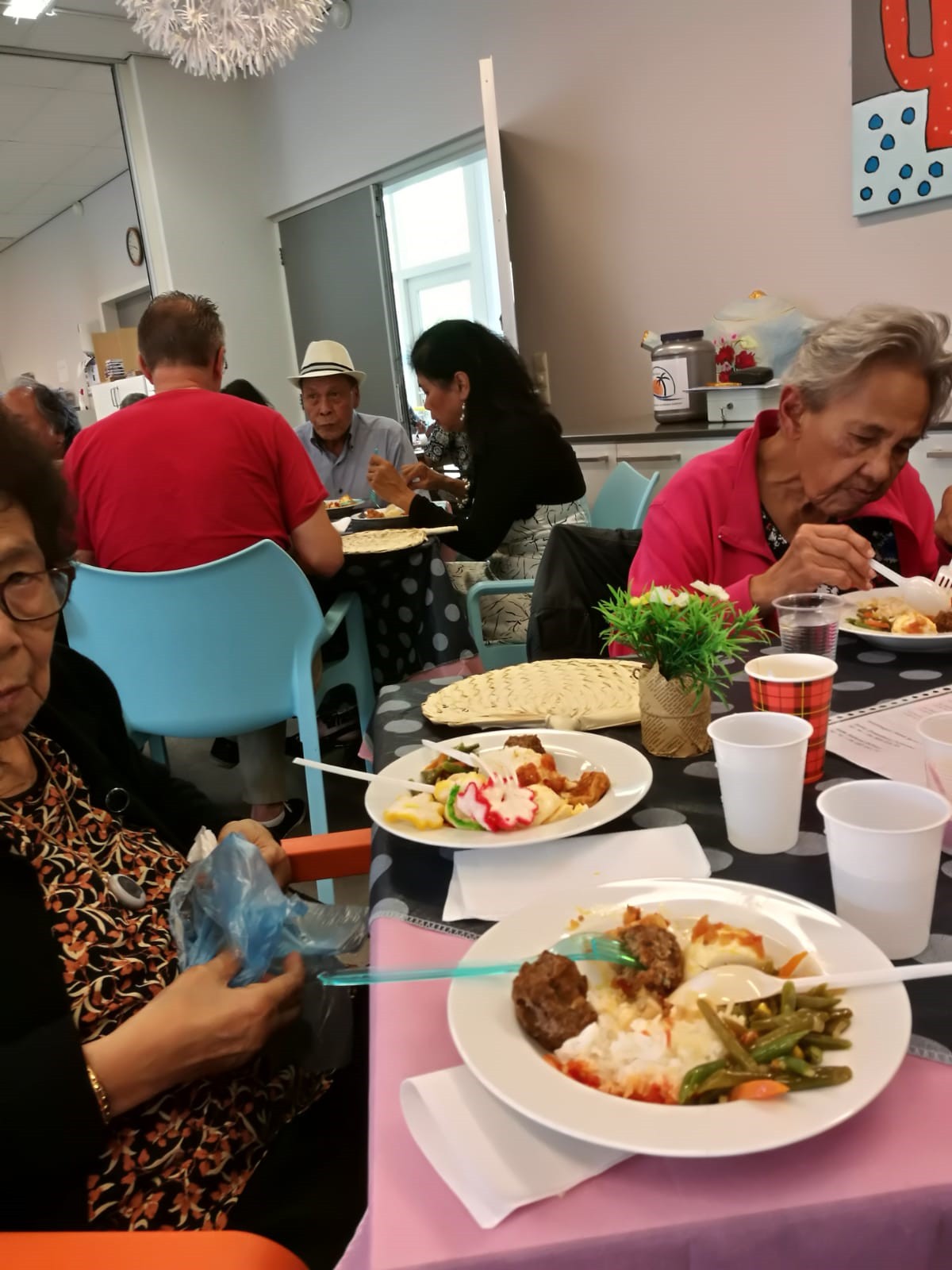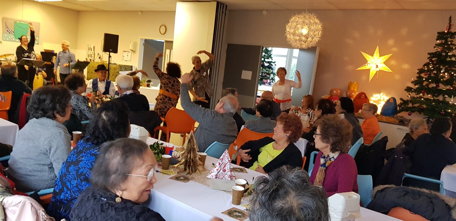 We hebben van Menzis Wageningen een uitnodiging ontvangen om met een aantal ouderen een Kerstdiner bij te wonen. Daar hebben wij gretig gebruik van gemaakt. We hebben een willekeurig aantal ouderen gevraagd om met ons mee te gaan en een paar vrijwilligers als begeleiders.