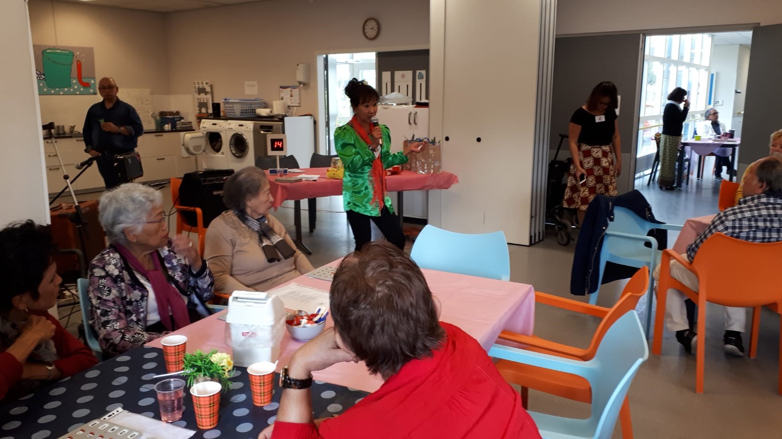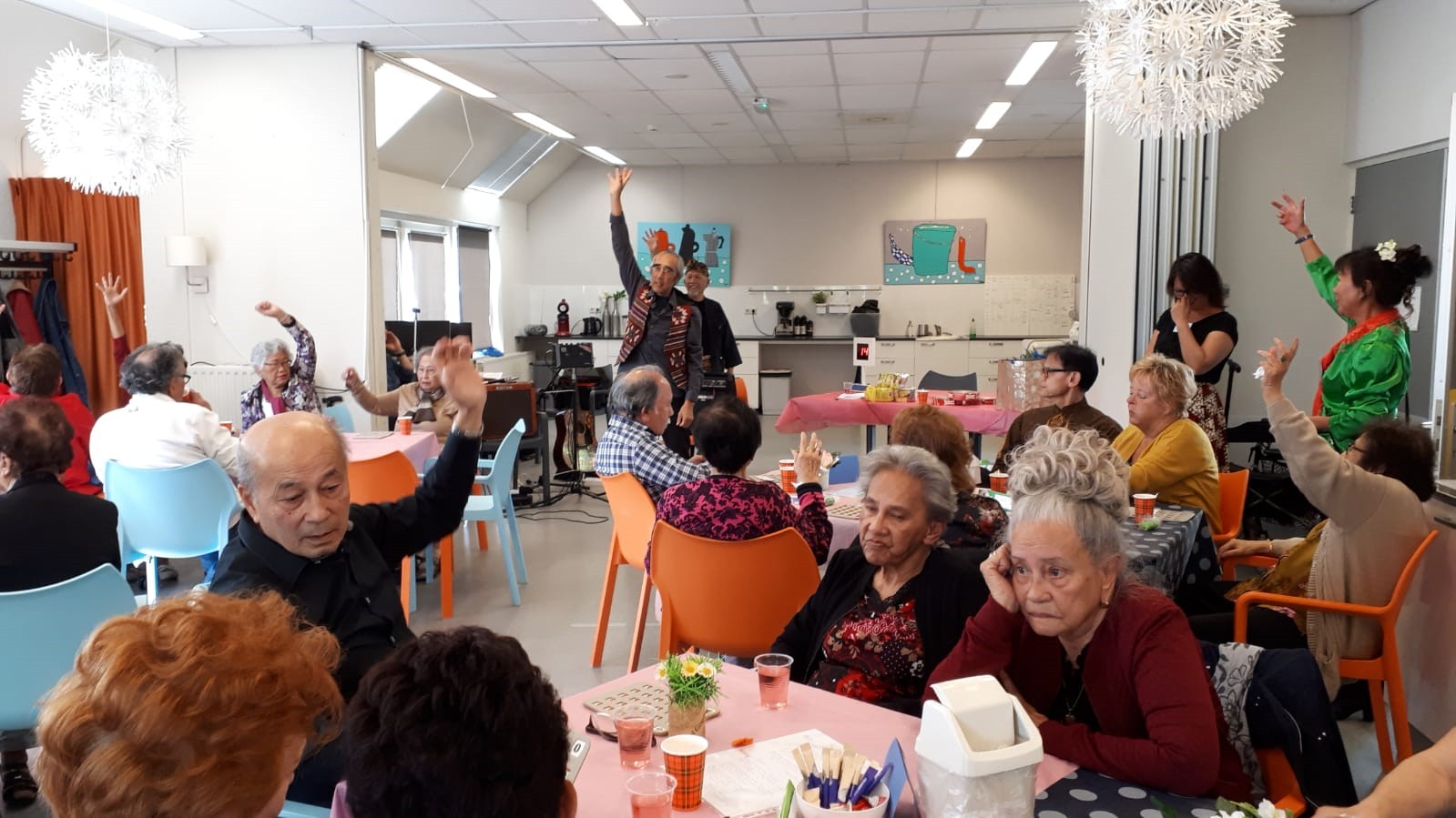 Marcel de Rooij heeft de avond geëntertaind met zijn zang. De sfeer zat er goed in en er werd dan ook volop gedanst, zelfs de polonaise en potjo potjo, het was erg gezellig.