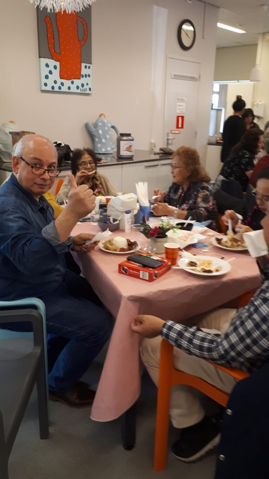 Het eten was heerlijk, iedereen genoot ervan maar natuurlijk misten een aantal personen sambal bij het eten.