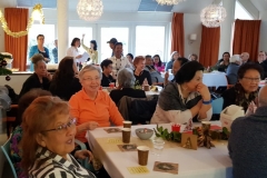 Al onze vrijwilligers voor deze middag zijn weer voorgesteld, de samenstelling kan namelijk per keer verschillen. Elke tafel kreeg een eigen tafelvrouw/heer toegewezen, zodat voor de gasten duidelijk was bij wie ze terecht kunnen voor als men wat nodig heeft.