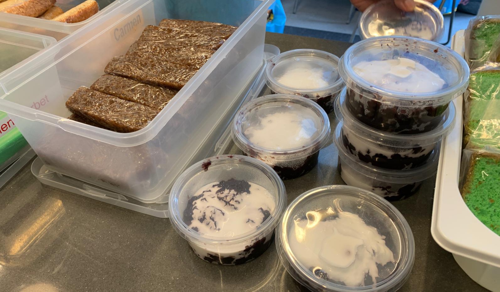 Op het menu stond er deze maand lontong met gado gado, kippepootje, tahoe , tempeh en ei met petjelsaus. De petjelsaus was gedoneerd door Ratu Culinair B.V.