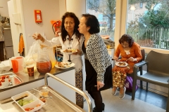 Zoals altijd werden we hartelijk verwelkomd en de koffie/thee stond klaar! Zodra de pannen op het vuur stonden kwamen de eerste cliënten al langs, aangetrokken door de geurige dampen uit de keuken. Om 12 uur was het zover, ruim 90 personen genoten van het eten.