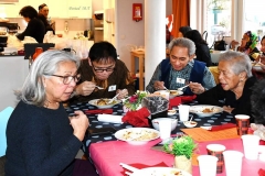 Saskia trakteerde alle bezoekers op cakejes. Daarna werden de bezoekers verrast met klepon van Endah. De laatste ronde bestond uit gehaktballetjes die Hannah had gemaakt. De band Amboyna 5 zorgde voor vrolijke, aanstekelijke muziek en de sfeer zat er goed in. Als altijd werden de jarigen van de maand september toegezongen, werden er lootjes getrokken en bingo gespeeld.