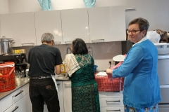 In de keuken was het team druk met het voorbereiden van de gezamenlijke maaltijd.