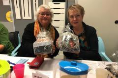 Na de koffie/thee begaven wij richting werkplaats, waar wij een demonstratie en uitleg op een leuke wijze kregen. Intussen werd alles klaar gezet voor de lunch. De lucht van gefrituurde kroketten kwam je tegemoet. De tafel was gedekt met kannen jus d’orange en melk, thee- en koffie, leuke bakjes gevuld met boter, jam, mosterd, melkkuipjes en suiker en een schaal met krentenbrood, sneetjes wit- en bruinbrood en lekkere belegde broodjes. De kroketten werden uitgedeeld. Het was goed verzorgd.