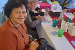 Teruggekomen bij de klompenmakerij kregen wij 2 drankjes en een warm hapje en had je de gelegenheid om mee te doen met de workshop klompje verven. De mensen waren zeer creatief. De klompjes waren verschillend gedecoreerd, b.v. blauwe, groene, rode en gele, al dan niet met bloempjes, stipjes of streepjes. Iedereen kreeg een klompje mee, geschilderd of blanco.