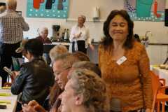Alhoewel iedereen onze vrijwilligers kent zijn ze in het welkoms woord toch weer even voorgesteld zodat voor elke tafel duidelijk is bij wie ze terecht kunnen. De belangstelling voor ons jaarlijkse uitje is erg groot. Dit jaar gaan we naar de Klompenmakerij Dussen. Voor diegene die meegaan is het programma besproken, met als extra opmerking dat de opstapplaats nu bij de Rijnhal is ipv bij winkelcentrum Rijkerswoerd.