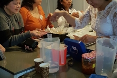 Zoals altijd werden we hartelijk verwelkomd en de koffie/thee stond klaar! Zodra de pannen op het vuur stonden kwamen de eerste cliënten al langs, aangetrokken door de geurige dampen uit de keuken. Om 12 uur was het zover, ruim 90 personen genoten van het eten.