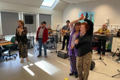 De hele middag werd er veel gedanst en meegezongen. De muziek en liedjes sloegen goed aan bij de bezoekers.