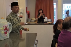 Hierna begon met korte terugblik op de activiteiten van Rumah Baru in het afgelopen jaar het feestprogramma. Na het gebruikelijke voorstellen van de vrijwilligers, het bedanken van de sponsors vervolgden we met het zingen van het Rumah Baru lied. Door Tai Chi- oefeningen te doen hebben we aandacht geschonken aan ons lichamelijk welzijn. Daarna kregen twee gastsprekers het woord, allereerst Machteld Klaren, werkzaam als Muziekcoach & Welzijn LEAN coach bij Rumah Kita in Wageningen. Na Machteld kwam Hans Kemper, voorzitter van het Bewoners Platform Rijkerswoerd.