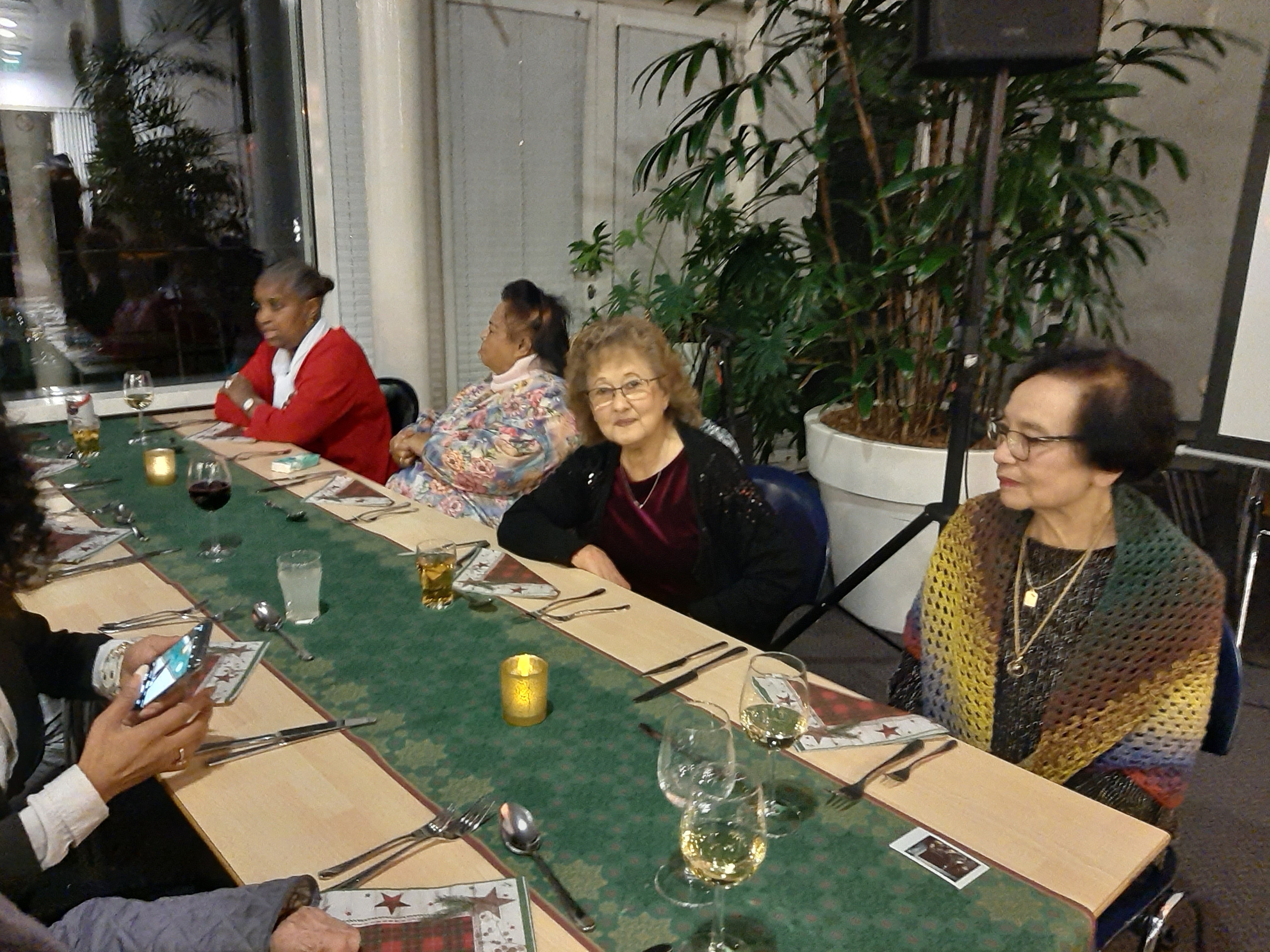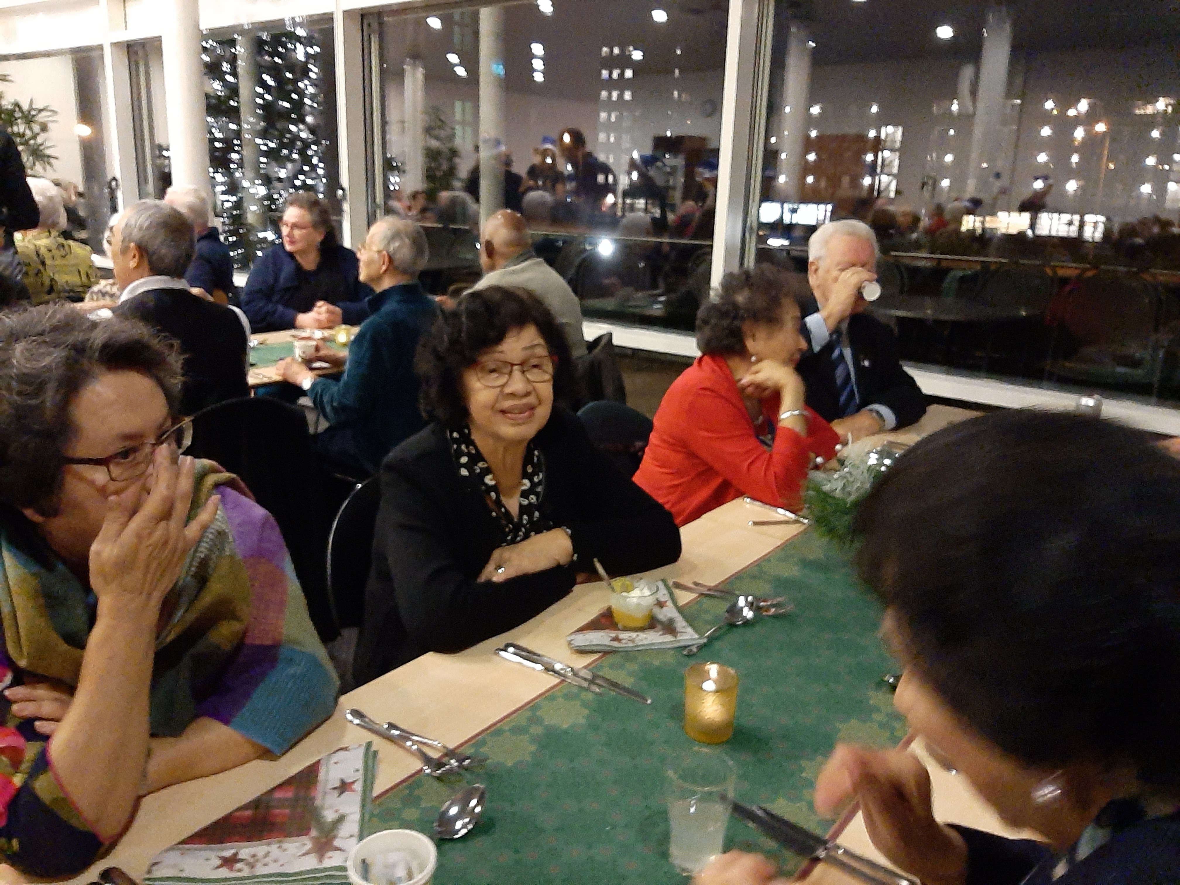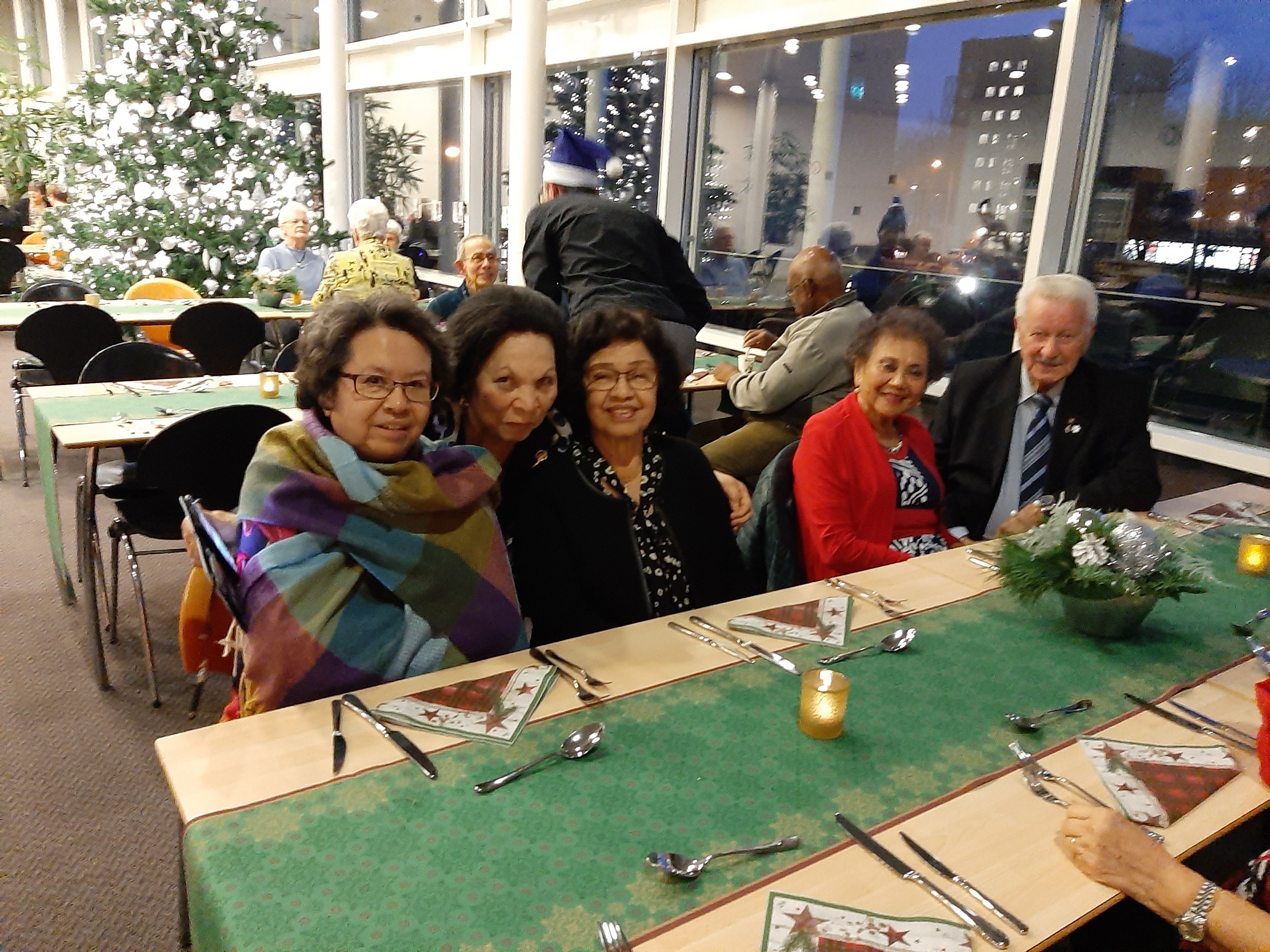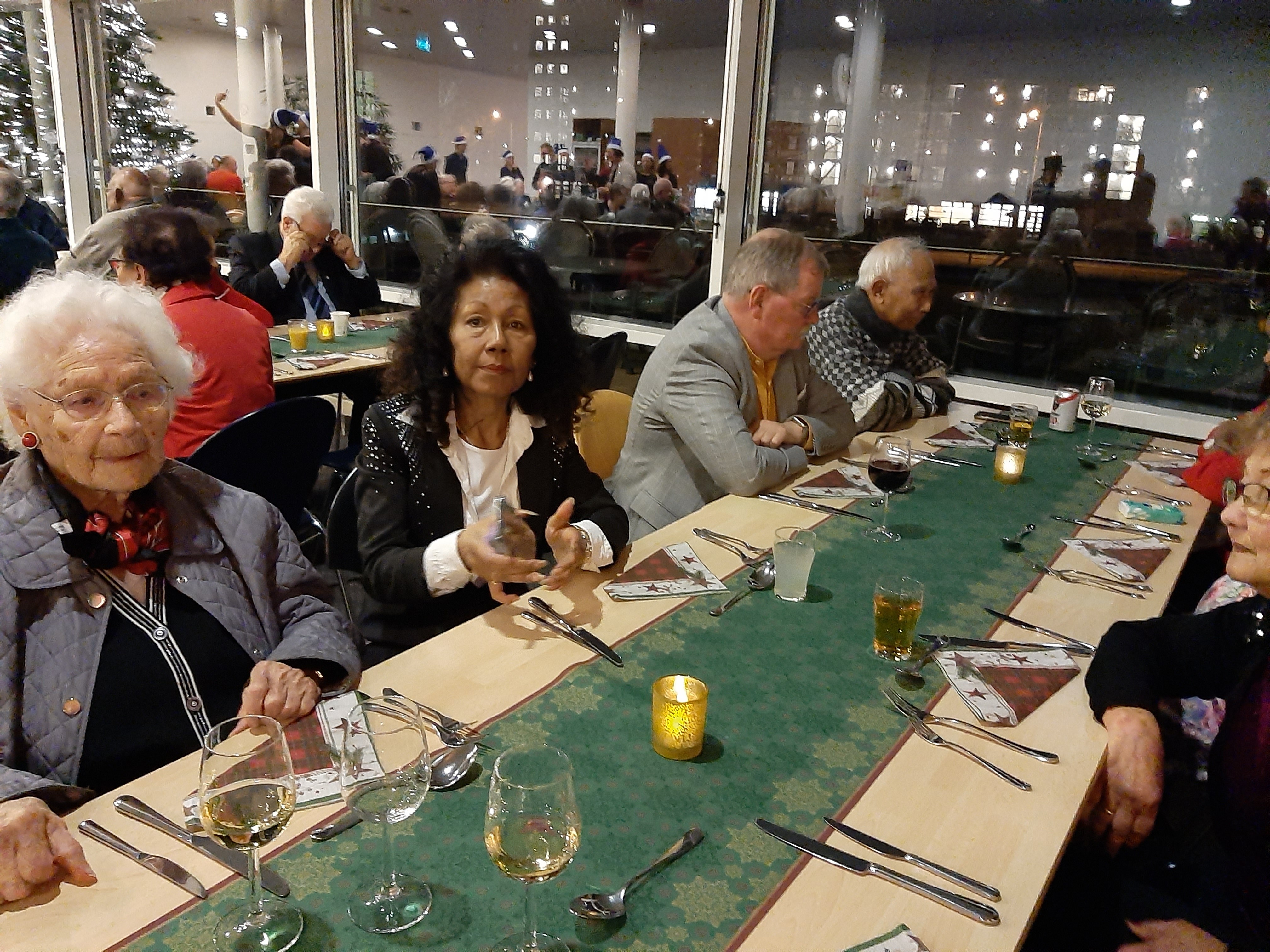 De tafels waren mooi opgemaakt, alles in kerstsfeer, het zag er gezellig en sfeervol uit.