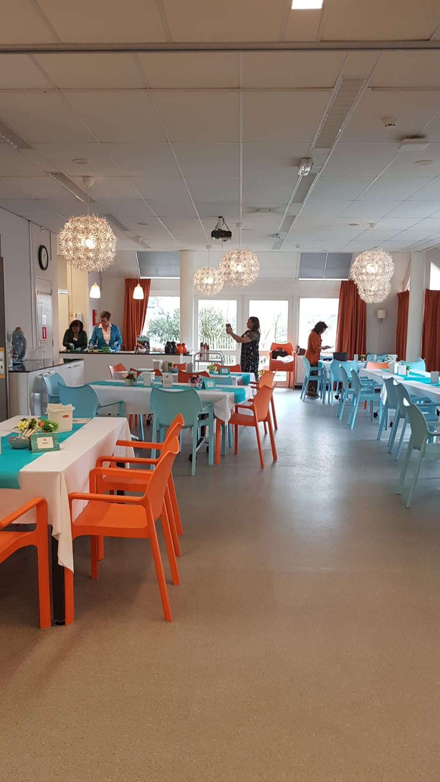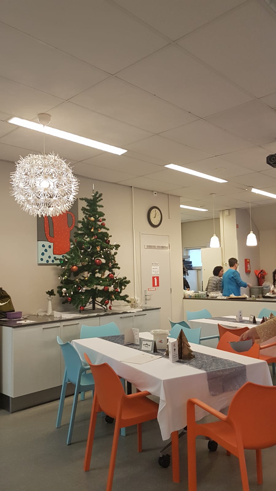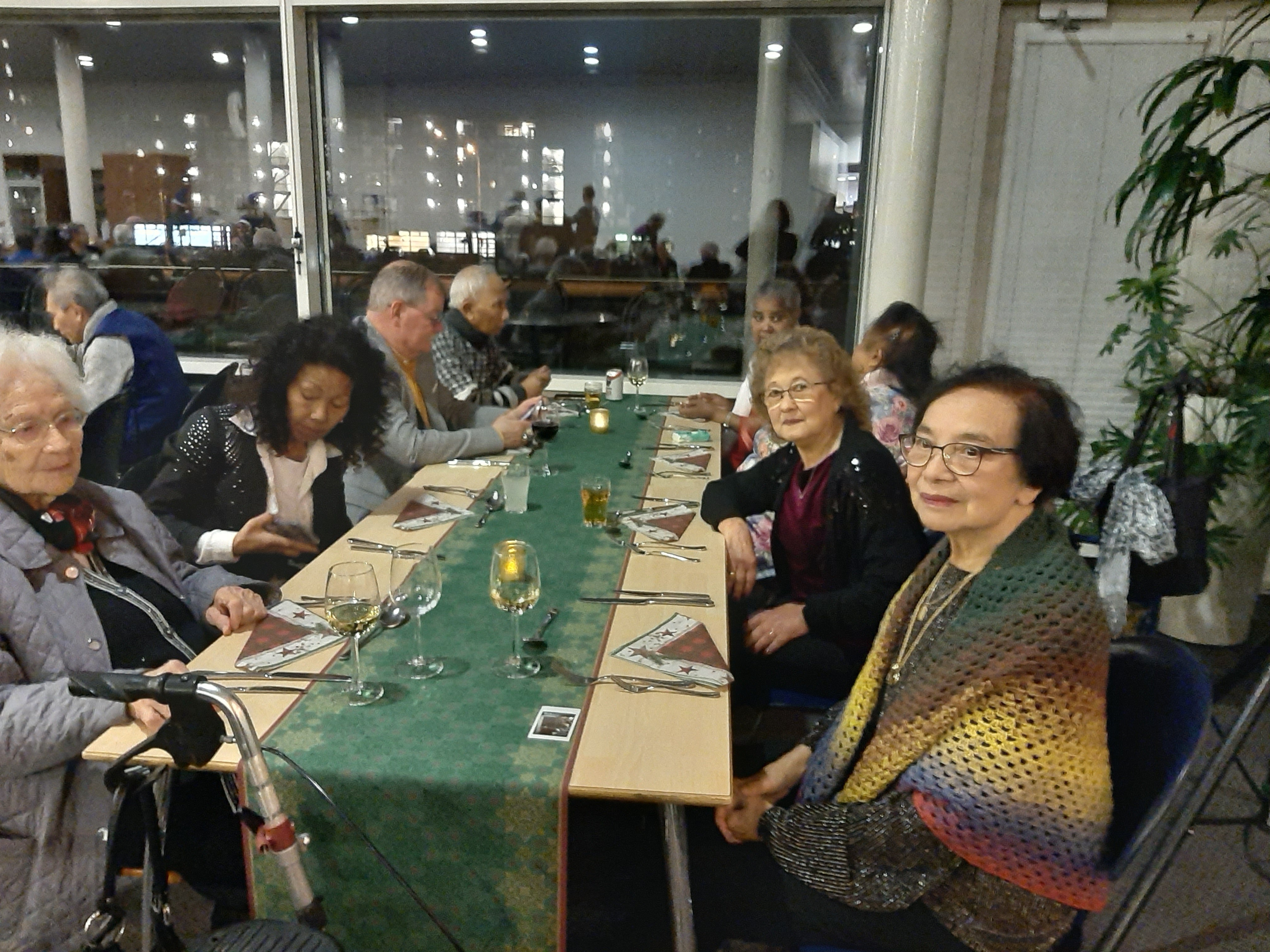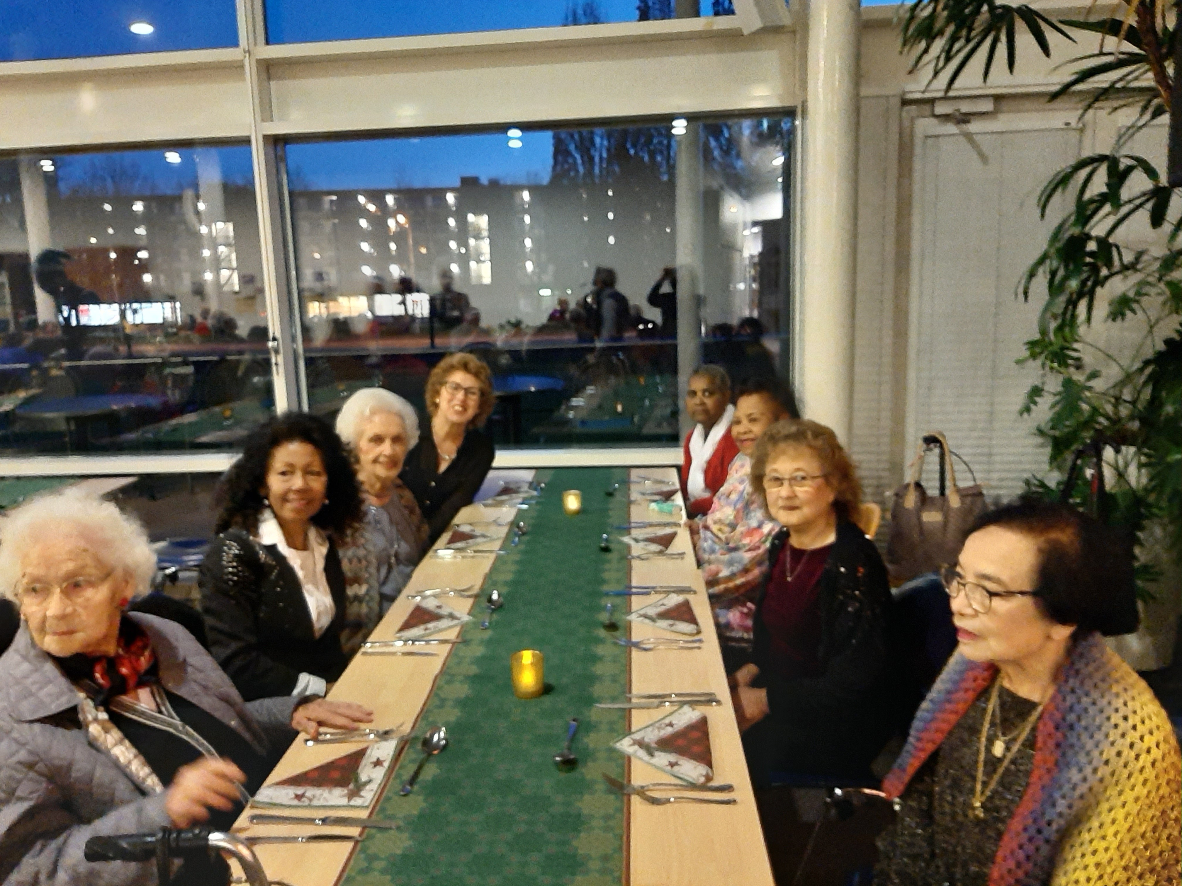De tafels waren mooi opgemaakt, alles in kerstsfeer, het zag er gezellig en sfeervol uit.