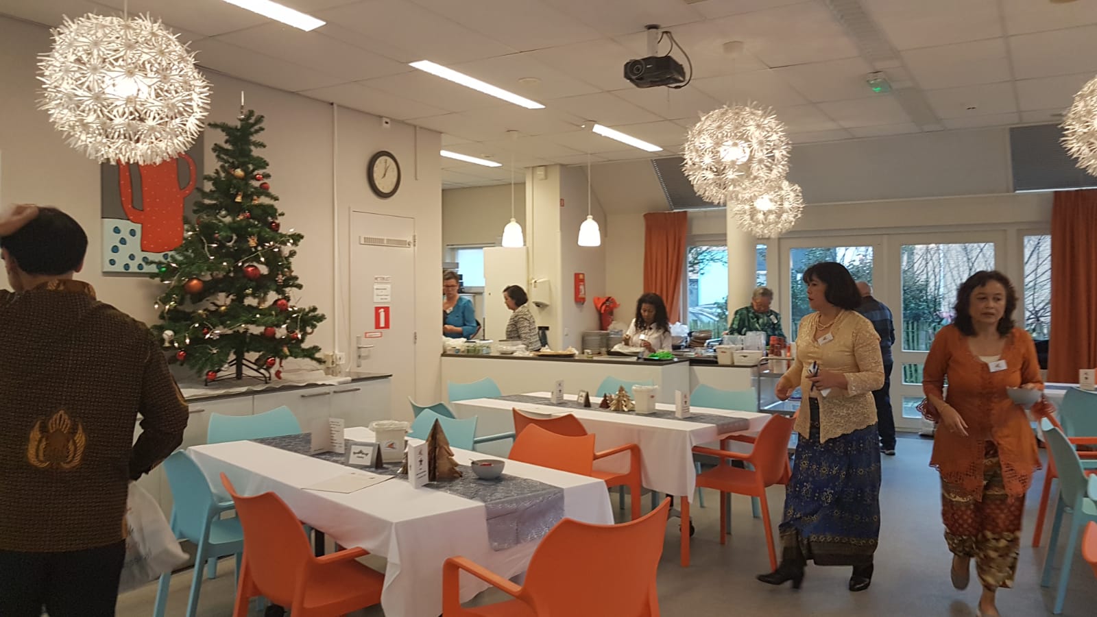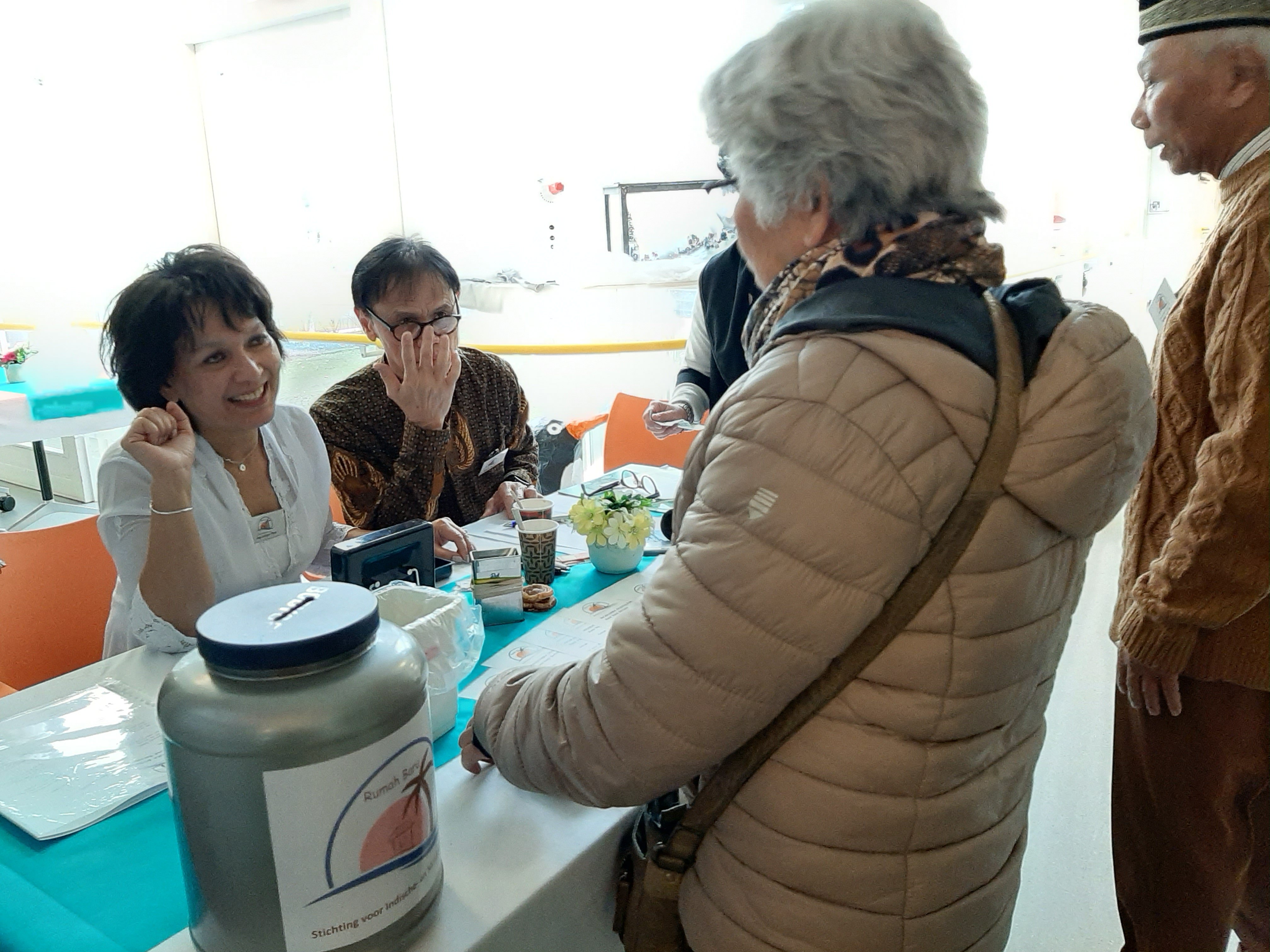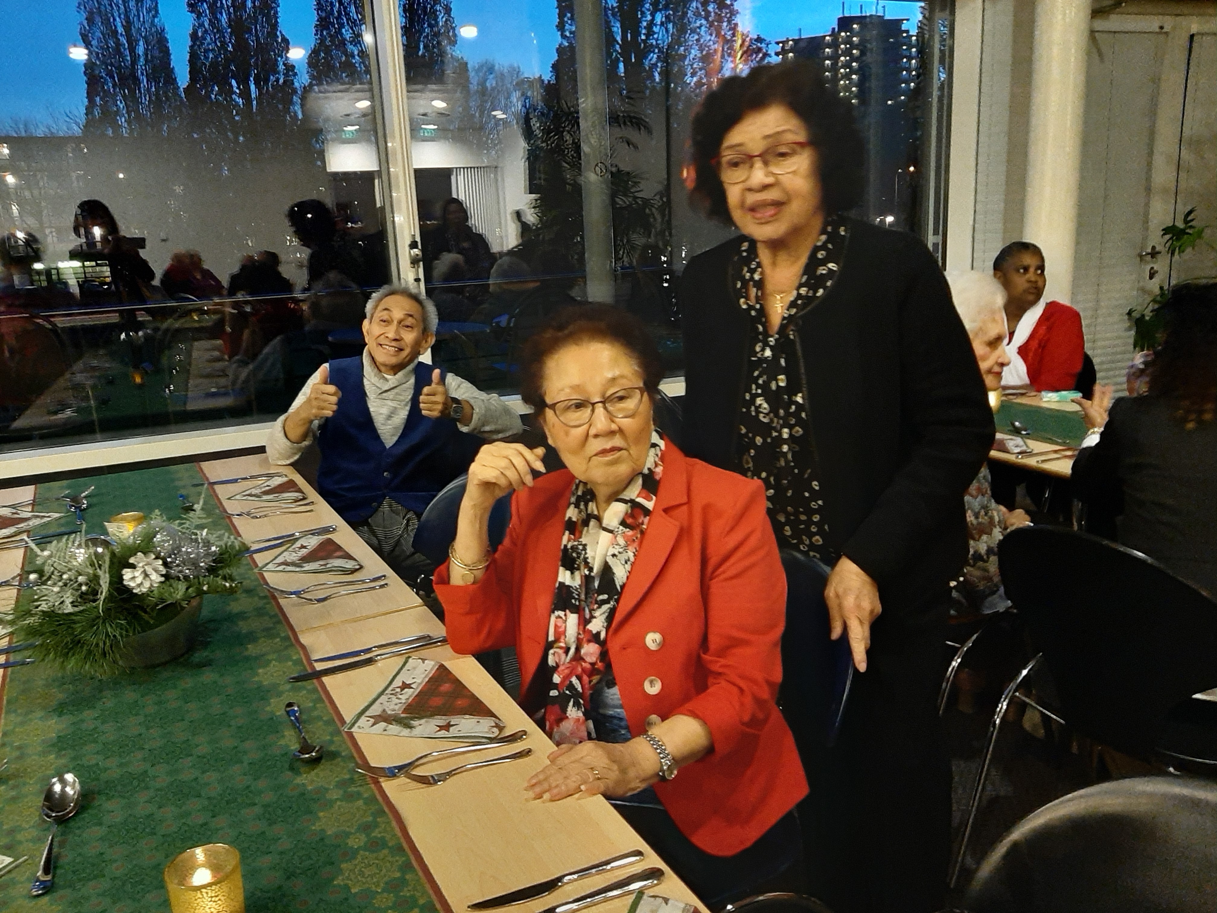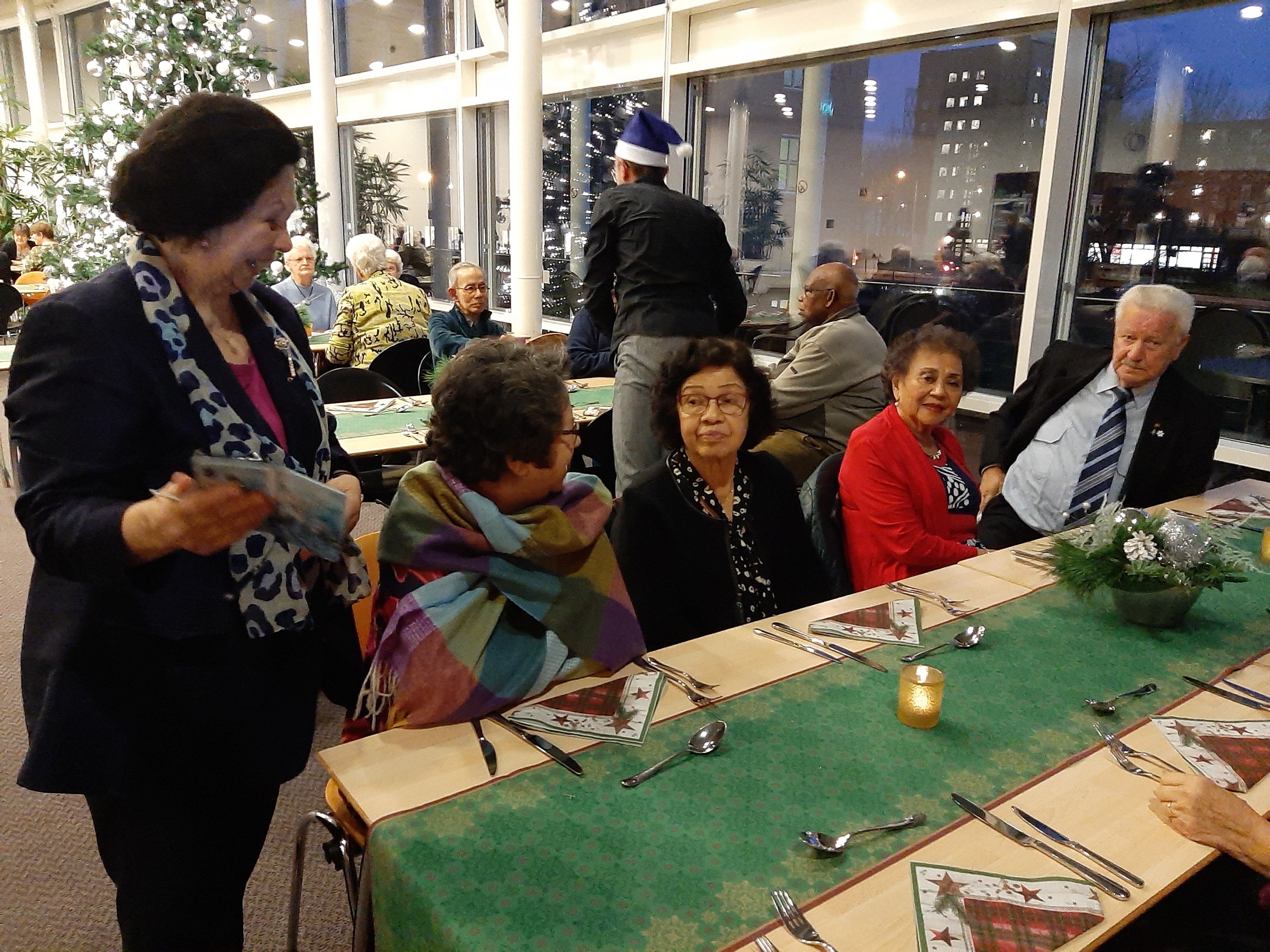 “Woensdag 18 december zijn we om 16 uur met twee busjes van Arnhem naar Wageningen gereden. 20 Ouderen van Rumah Baru zijn uitgenodigd voor een kerstdiner bij zorgverzekeraar Menzis. We zijn door de enthousiaste medewerkers van Menzis enorm in de watten gelegd. Zelfs de lift werd voor ons bediend!