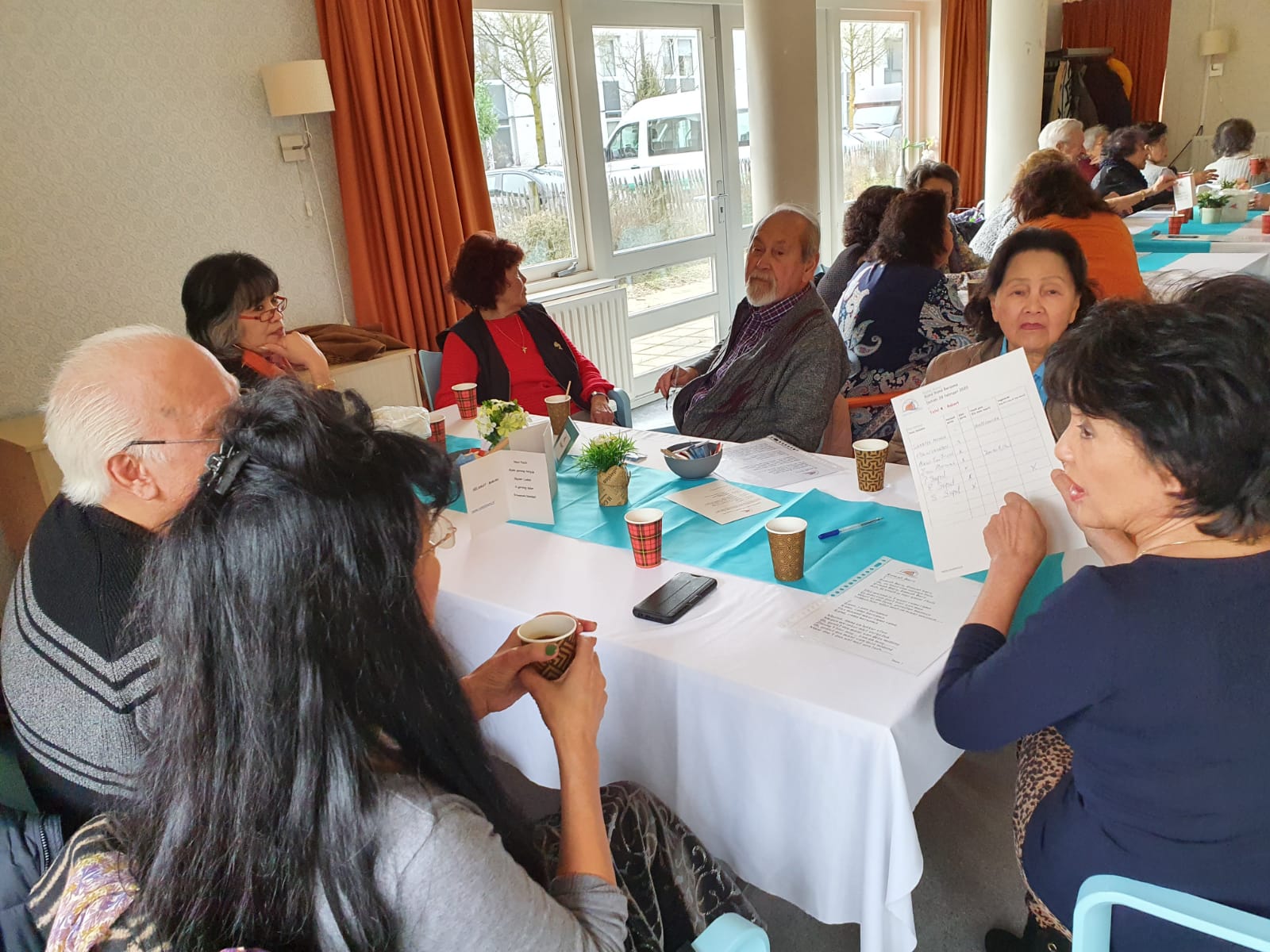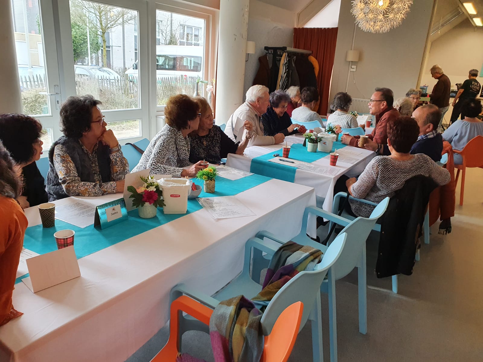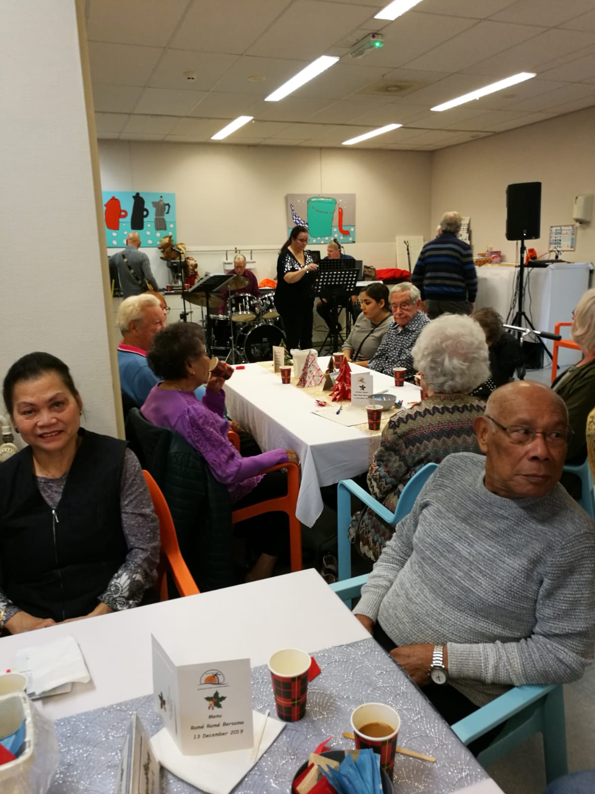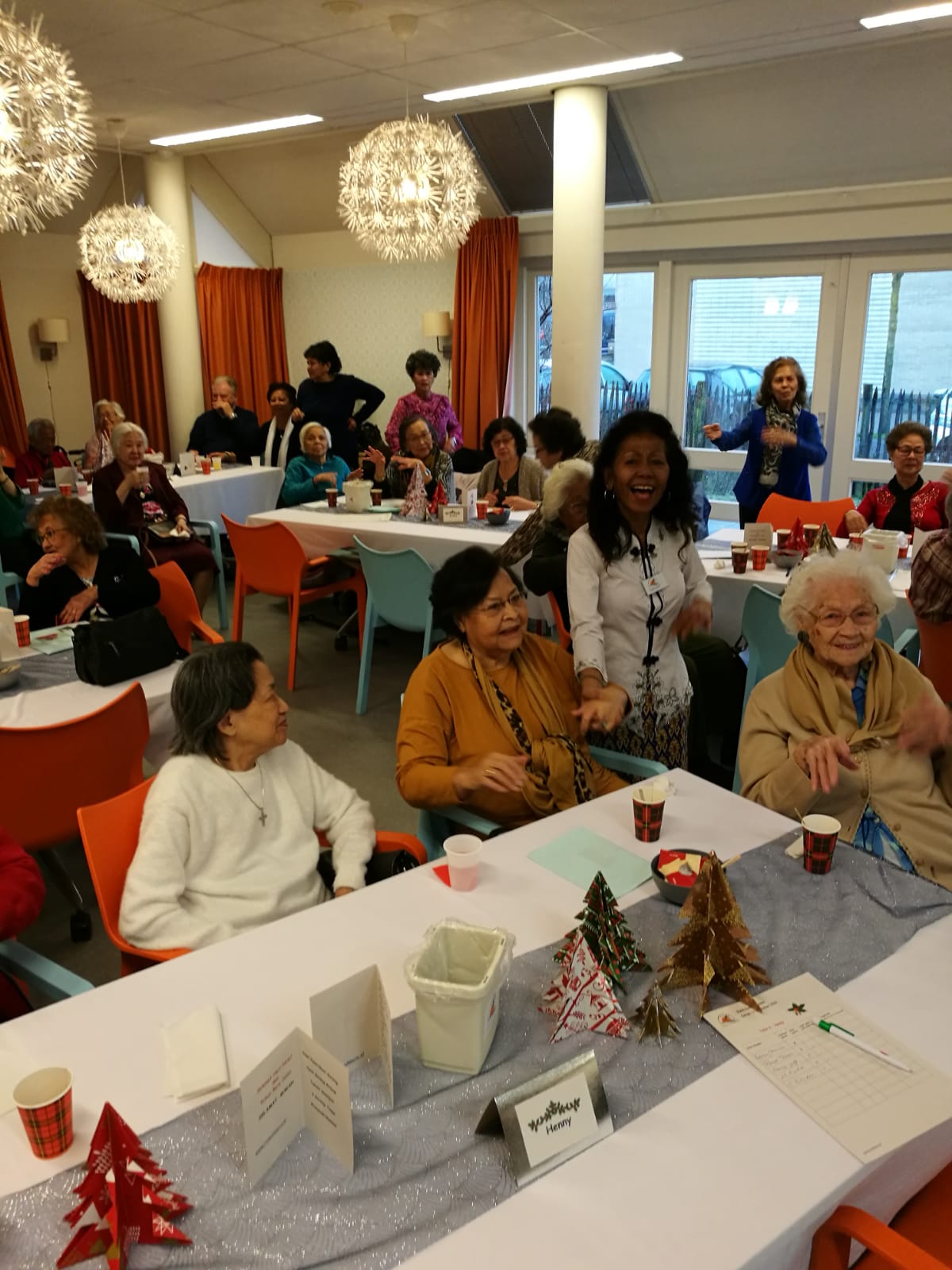 Deze middag stond in het teken van de kerst. Door de te verwachten drukte werd verzocht om zich in te schrijven. Gelukkig maar, want we zaten helemaal vol. Het was vanwege brandveiligheid niet toegestaan om meer mensen binnen te laten.