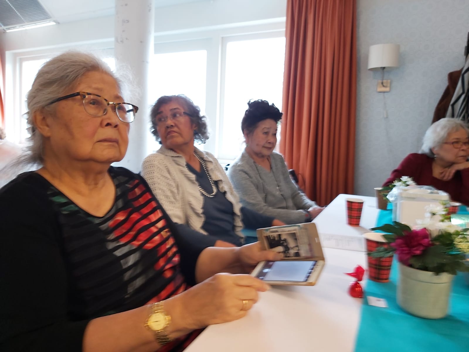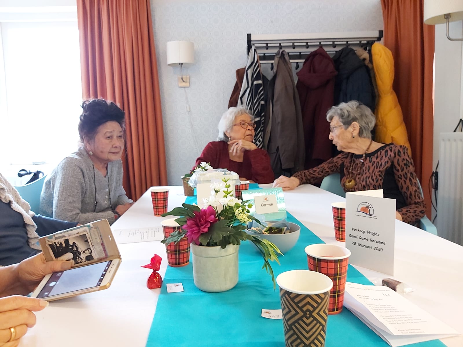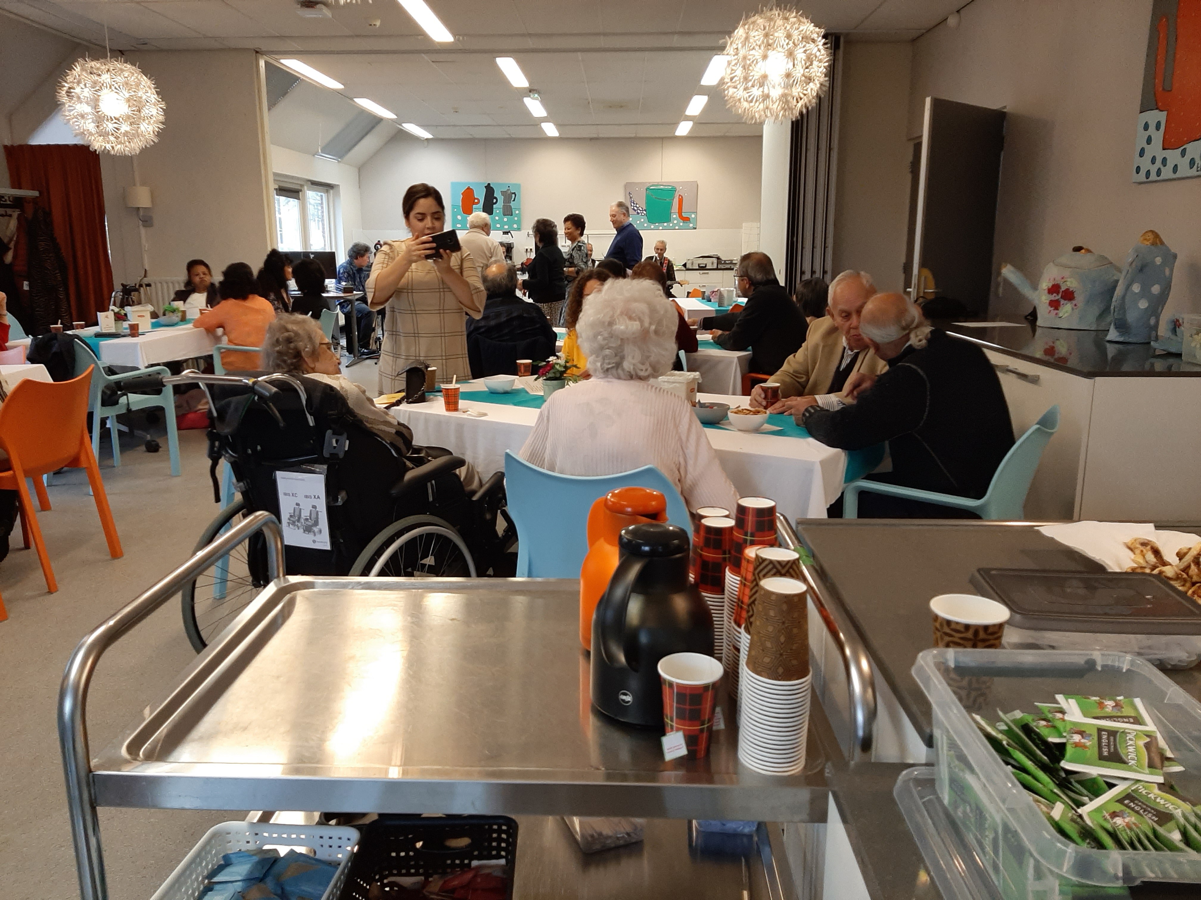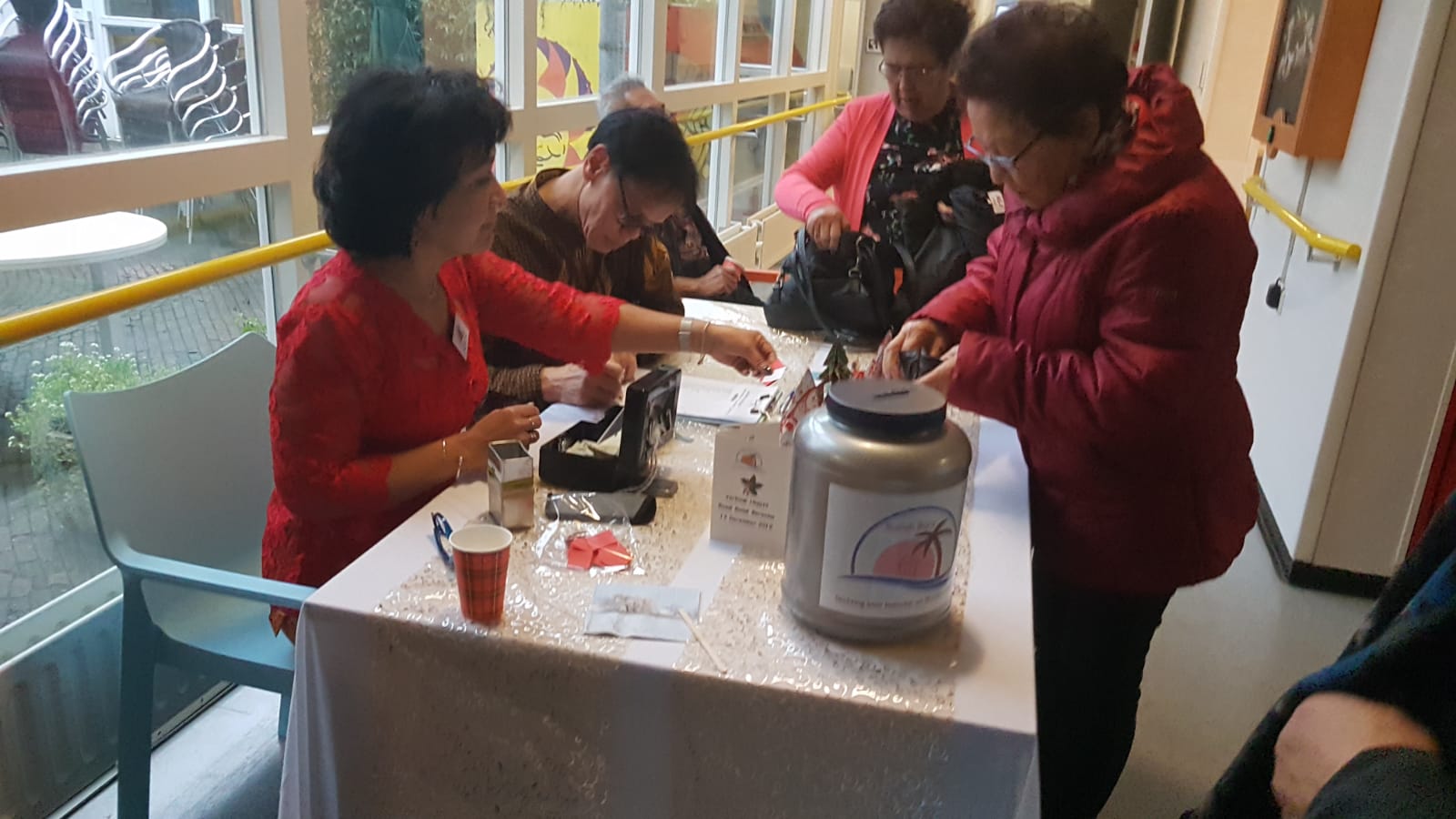 Deze middag stond in het teken van de kerst. Door de te verwachten drukte werd verzocht om zich in te schrijven. Gelukkig maar, want we zaten helemaal vol. Het was vanwege brandveiligheid niet toegestaan om meer mensen binnen te laten.