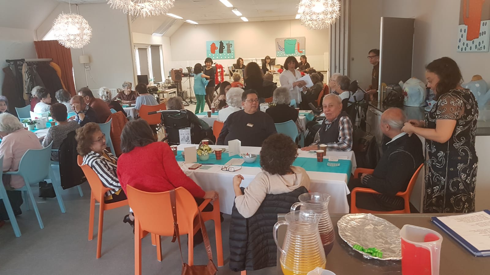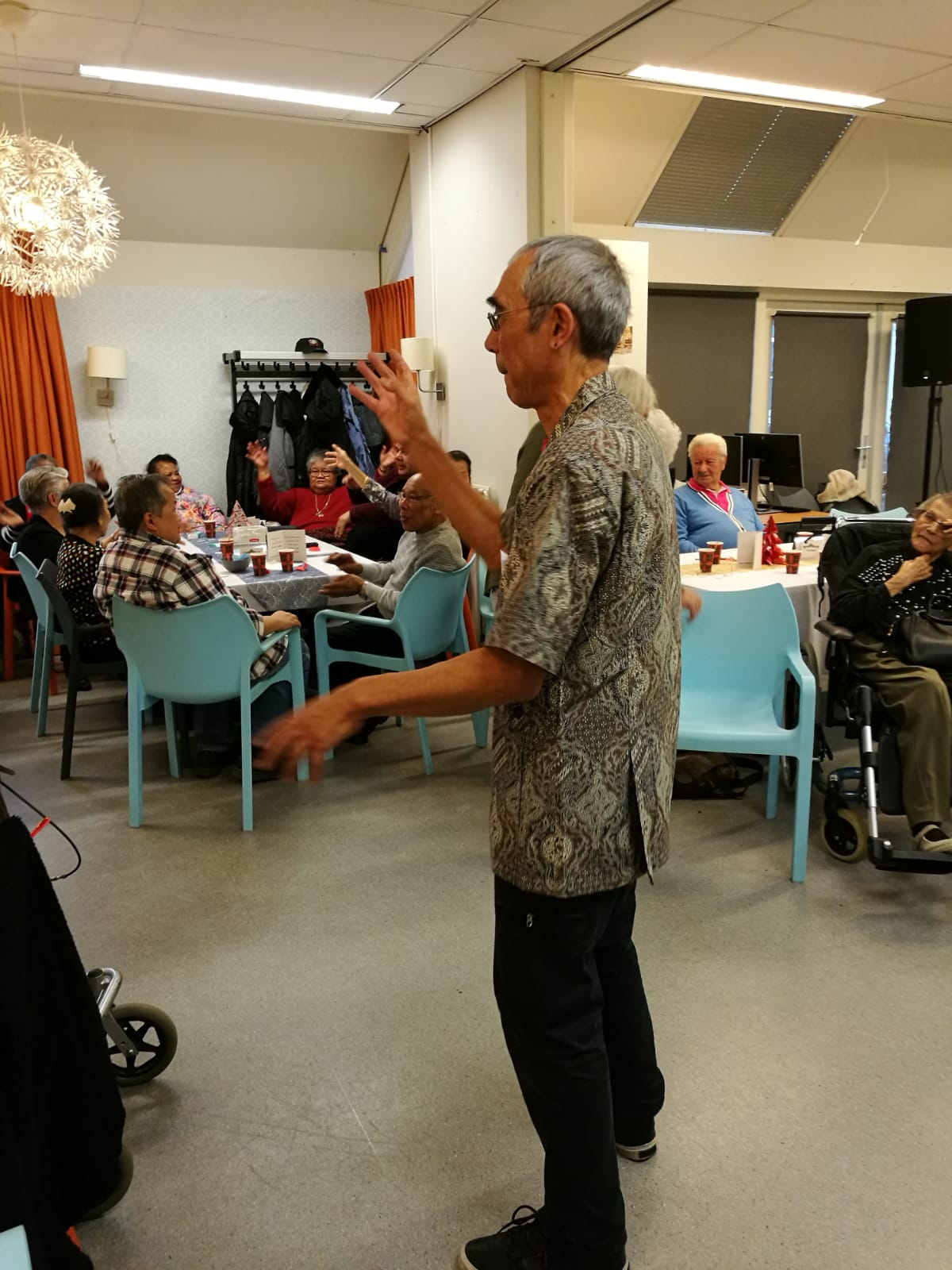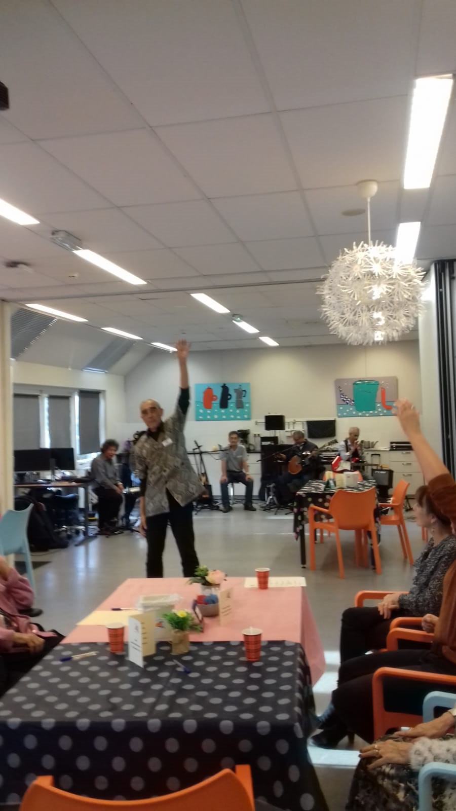 Er werd goed meegedaan met Tai Chi gegeven door Frans. Daarna werd er natuurlijk gedanst op de muziek van Ray and friends. Toen was het tijd voor de Bingo, 3 prijzen waren er te winnen . De eerste prijs is gewonnen door een lieve dame en de andere twee prijzen werden gewonnen door een begeleider van een nieuwe bezoeker. Een geluk voor hem en helaas pech voor de anderen. Wederom was daar de muziek waar je gewoon op moet dansen, altijd leuk om te kijken hoe er gedanst wordt. Na het nuttigen van de gezamenlijke maaltijd was het tijd voor de RB loterij deze waren gewonnen door 2 lieve dames. Alle winnaars van harte gefeliciteerd. De hapjes verkoop verliep voorspoedig, er waren dan ook heerlijke hapjes te koop. We sloten af met muziek van Ray and friends.