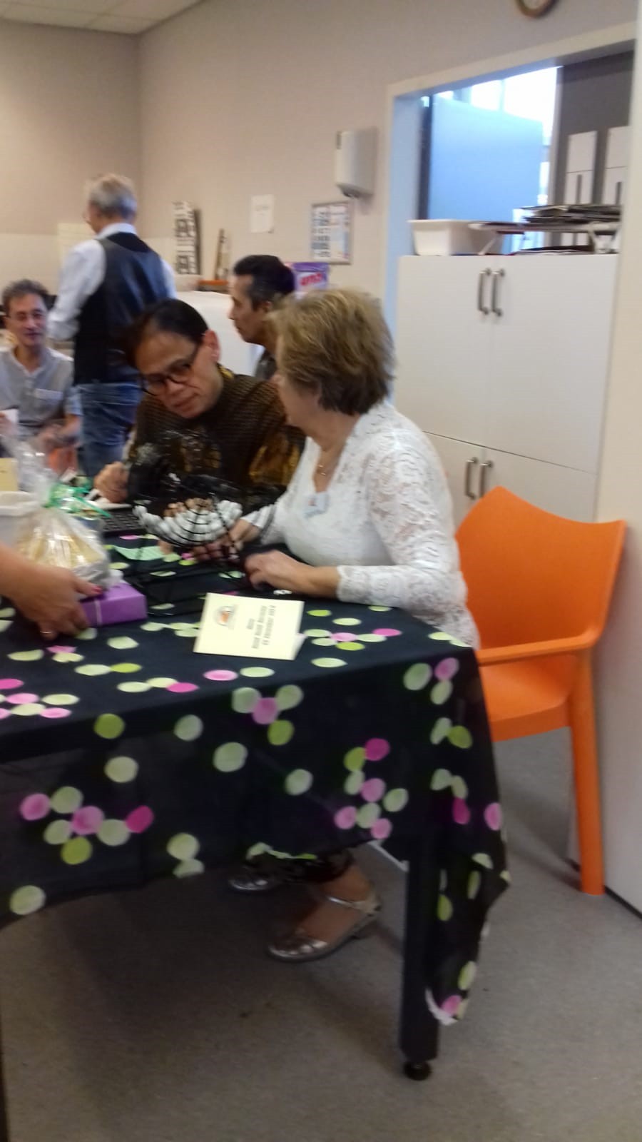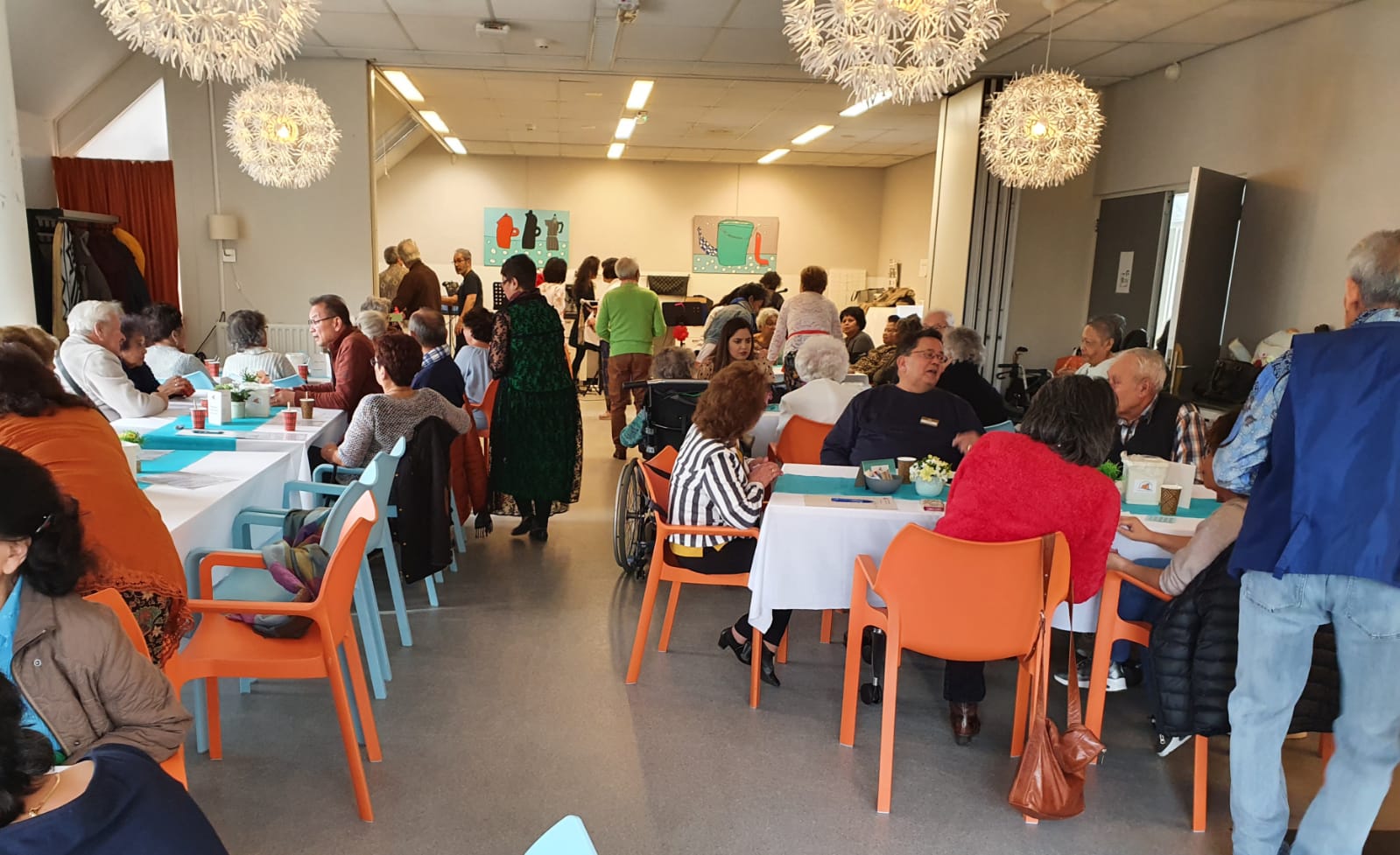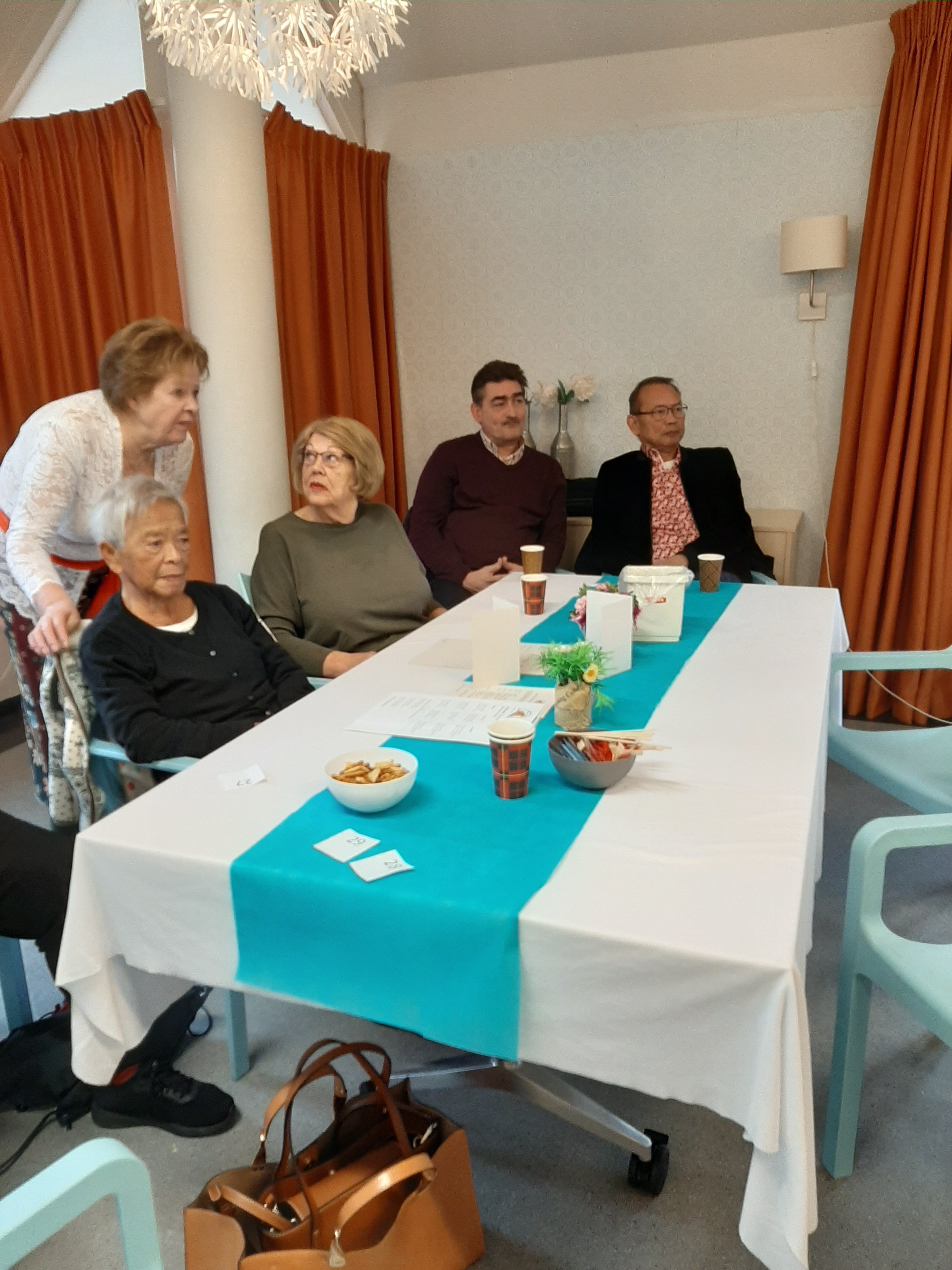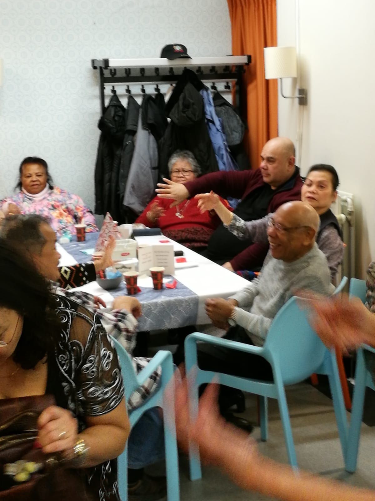 Er werd goed meegedaan met Tai Chi gegeven door Frans. Daarna werd er natuurlijk gedanst op de muziek van Ray and friends. Toen was het tijd voor de Bingo, 3 prijzen waren er te winnen . De eerste prijs is gewonnen door een lieve dame en de andere twee prijzen werden gewonnen door een begeleider van een nieuwe bezoeker. Een geluk voor hem en helaas pech voor de anderen. Wederom was daar de muziek waar je gewoon op moet dansen, altijd leuk om te kijken hoe er gedanst wordt. Na het nuttigen van de gezamenlijke maaltijd was het tijd voor de RB loterij deze waren gewonnen door 2 lieve dames. Alle winnaars van harte gefeliciteerd. De hapjes verkoop verliep voorspoedig, er waren dan ook heerlijke hapjes te koop. We sloten af met muziek van Ray and friends.