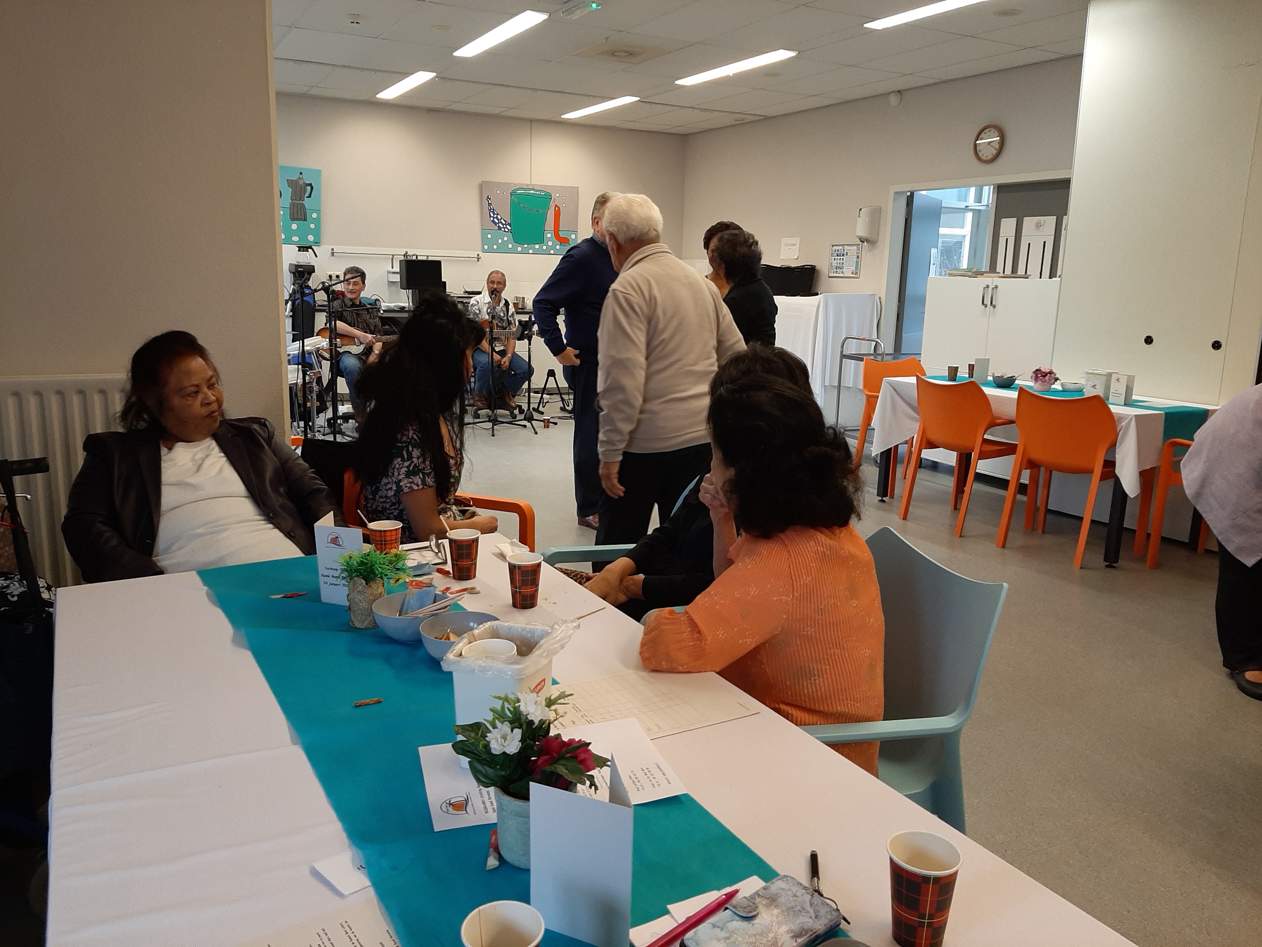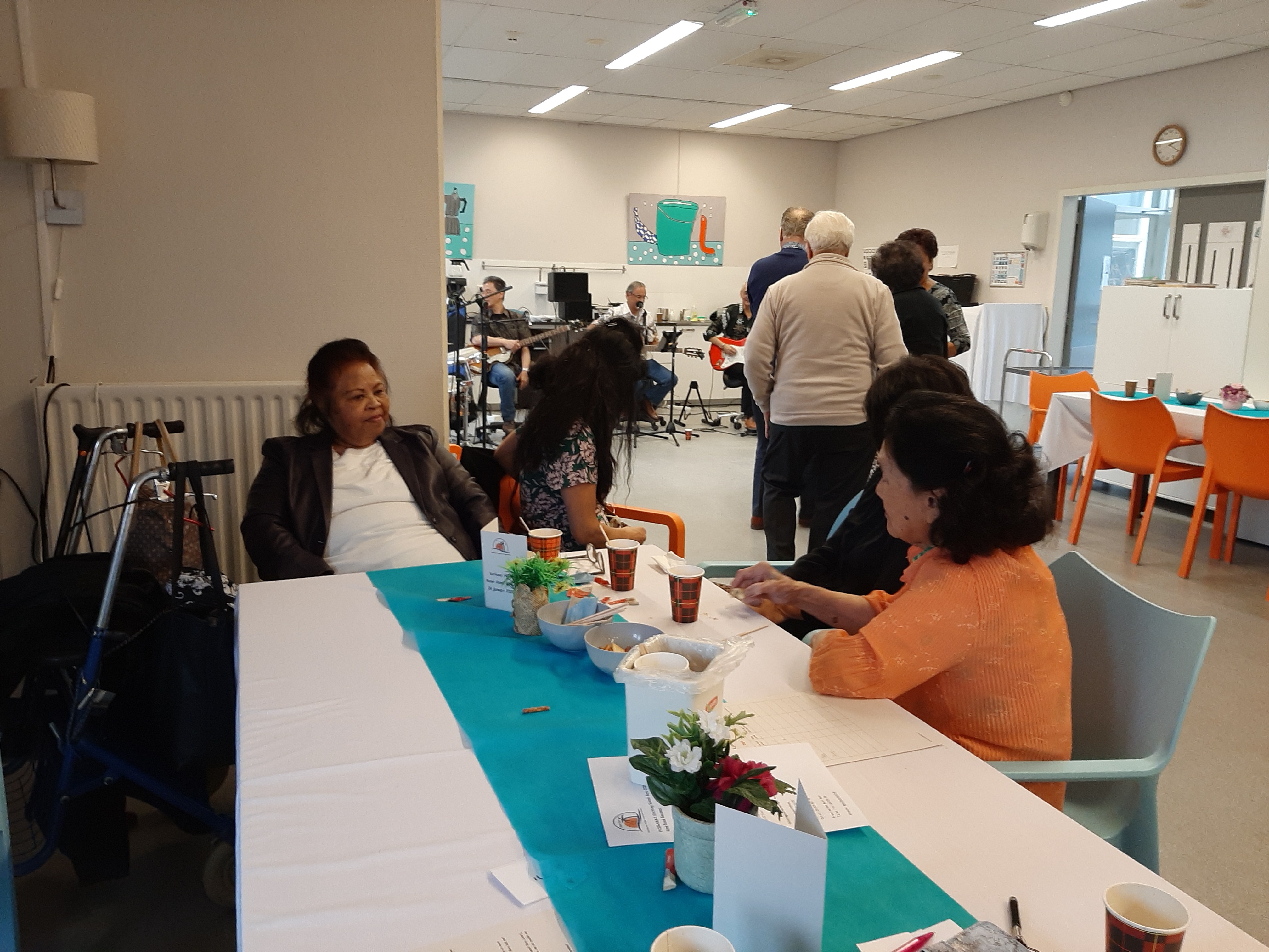 Deze middag stond de groep Nooitgedagt (LouLou, Maria Victoria, Inge, Eli) en Bingo op het programma. De opkomst was grootst en het was een zeer geslaagde middag met goede muziek, bingo en lekker eten. Buiten de vaste bezoekers waren er een aantal nieuwe bezoekers waaronder bewoners van Rumah Kita uit Wageningen.